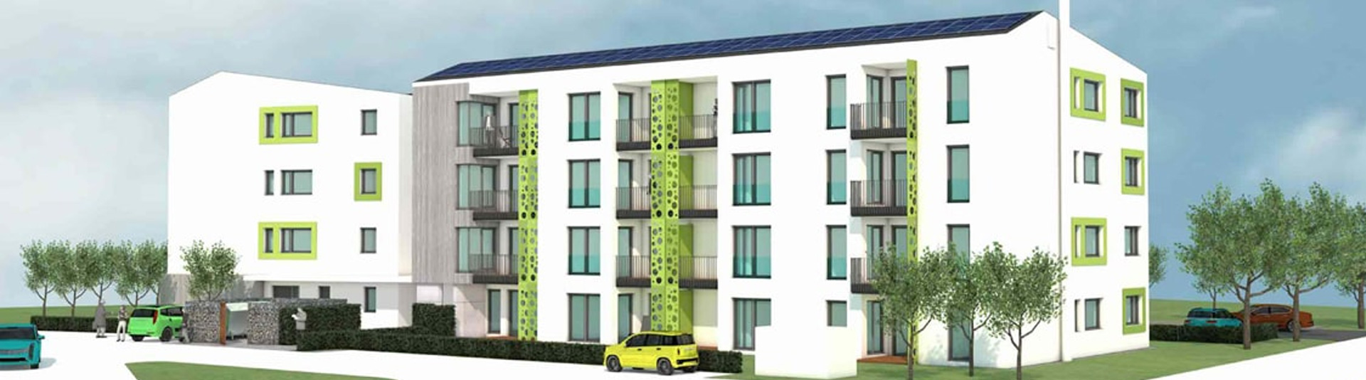 Zunächst entstehen Wohnungen im geförderten Wohnungsbau, die für Mieter mit niedrigem und mittlerem Einkommen bezahlbaren Wohnraum nach aktuellem Standard zu bieten. Die Wohnungen werden barrierefrei und möglichst mit Aufzug errichtet, um optimale Voraussetzungen für ältere oder bewegungseingeschränkte Mieter, aber auch für Familien bereitzustellen.